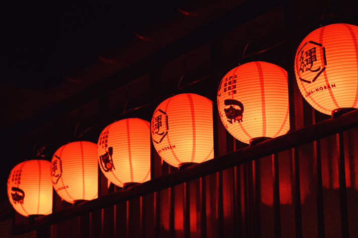The lanterns from the previous establishment were retained, with only the washi paper design renewed. Various lanterns hanging throughout the interior feature three different tanuki variations, creating a lively atmosphere characteristic of a traditional casual izakaya.