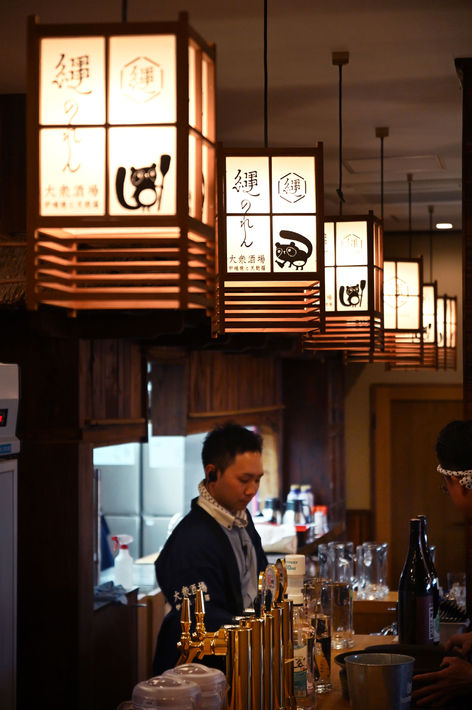 前の店舗の行灯を引き継ぎ、和紙のデザインのみ刷新。店内に吊り下がるさまざまな行灯には、3パターンのたぬきでデザインが変化し、大衆酒場らしい賑やかな装いを演出しています。